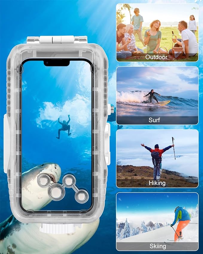 - Crystal Clear Lens: The high-quality transparent front ensures that your camera or phone lens captures clear and crisp underwater shots.