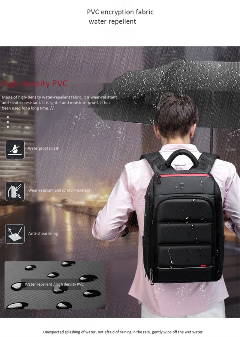 Keep your laptop, gadgets, and documents safe with the backpack's advanced waterproof material. Whether you’re caught in a sudden downpour or navigating through wet conditions, this backpack ensures your belongings stay dry and secure. Its water-resistant coating helps protect your valuable tech from rain, splashes, and moisture.