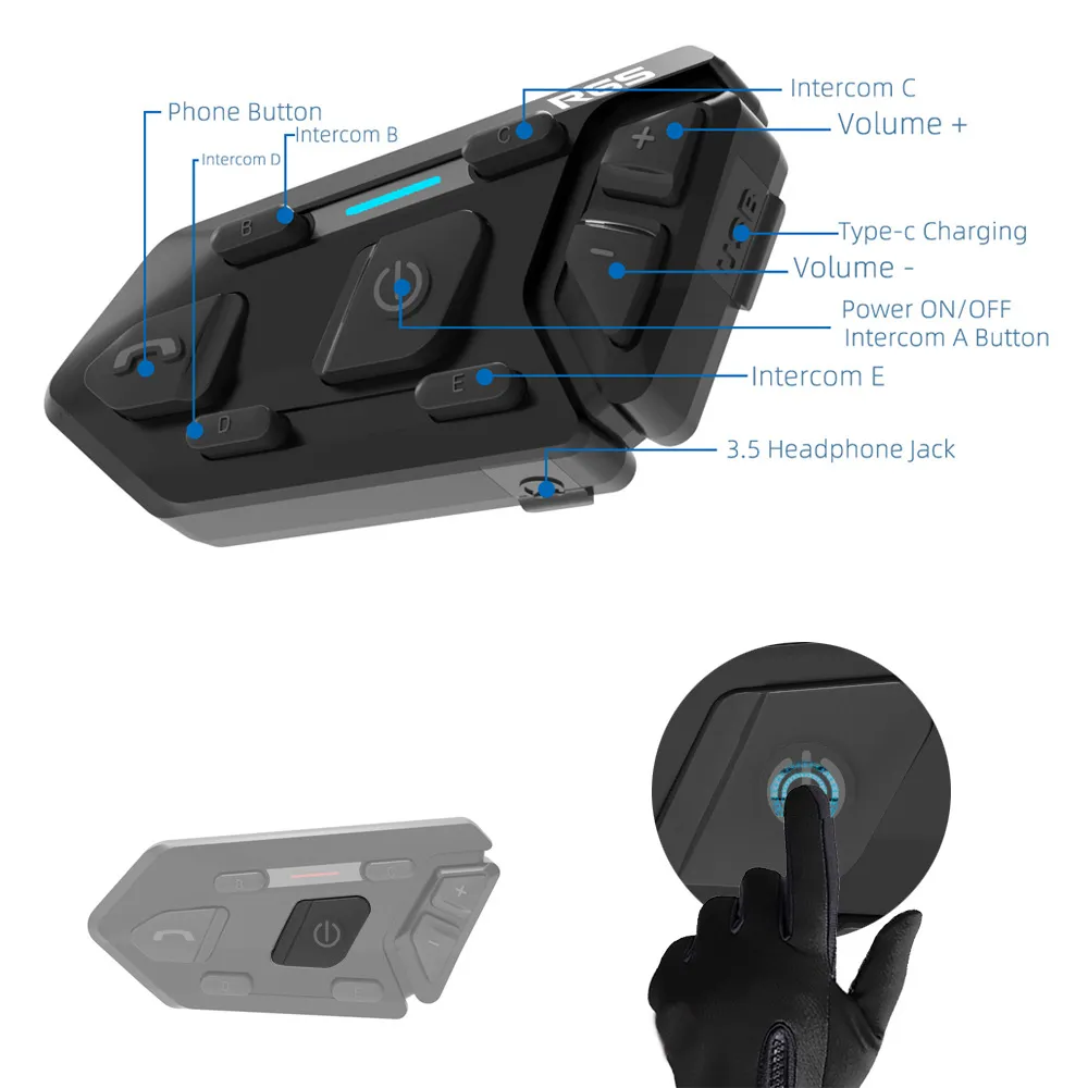 This Bluetooth headset features intuitive and user-friendly controls that allow you to adjust volume, answer calls, and communicate with fellow riders without removing your hands from the handlebars. With simple, glove-friendly buttons, you can keep your focus on the road while easily managing your calls, music, and intercom communication.