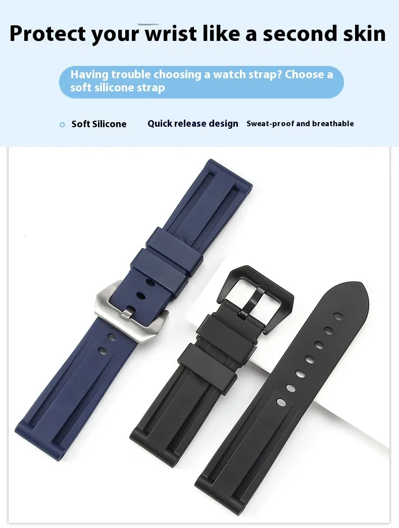 The Waterproof Rubber Pin Buckle Silicone Watch Strap is the ultimate choice for those seeking comfort, durability, and style in their timepiece accessory. Designed for active individuals, this strap is perfect for those who lead a busy lifestyle, love outdoor activities, or simply want a reliable watch strap for everyday wear. Made from high-quality silicone and equipped with a secure pin buckle, this watch strap ensures that your timepiece stays comfortably and securely on your wrist throughout the day. The waterproof feature makes it an excellent companion for swimming, exercising, and other water-based activities, while the sleek, minimalist design ensures it complements a variety of watches.