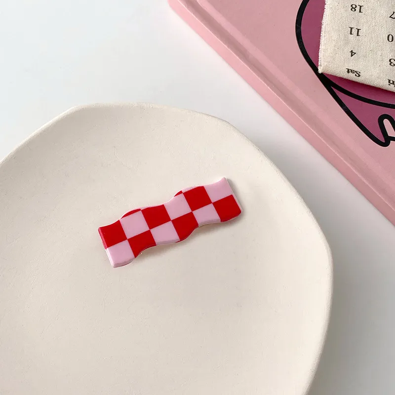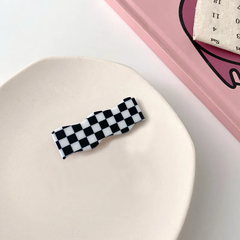 Wavy Checkerboard Hair Clips Sweet Versatile Bangs Clips