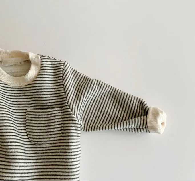 Wear striped baby jumpsuits outside