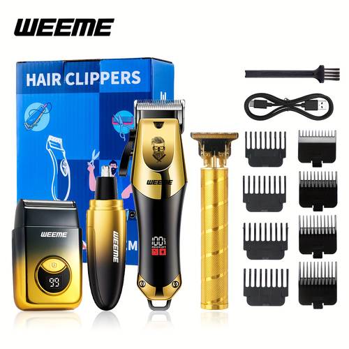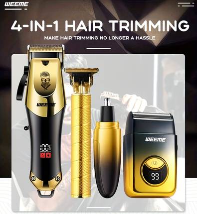 WEEME 4-Piece Men’s Electric Hairdresser Set – Complete Grooming Kit for Haircuts, Shaving, Sculpting & Nose/Eyebrow Trimming