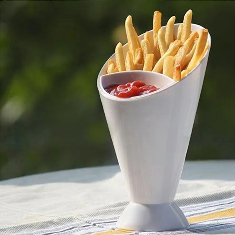 This cup is specifically designed to serve a variety of dishes, including crispy french fries, fresh vegetable salads, and other appetizers. Its unique shape helps showcase your food in a visually appealing way, while also allowing for easy access to your meal. The spacious interior allows for generous portions, making it perfect for both small and large servings.