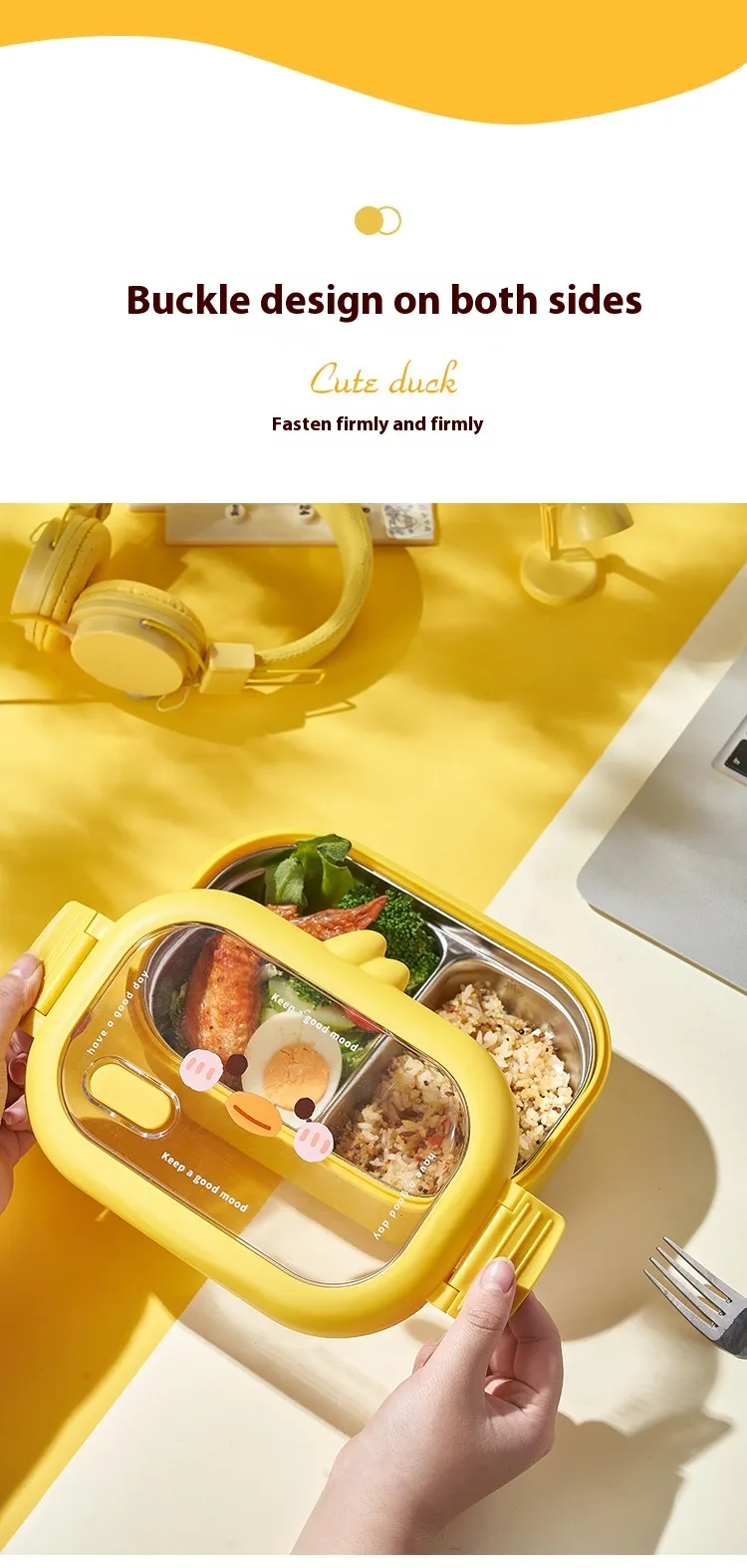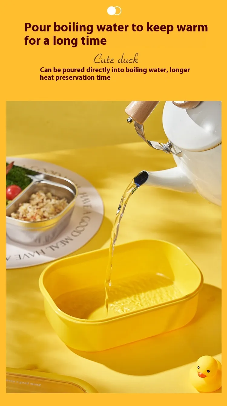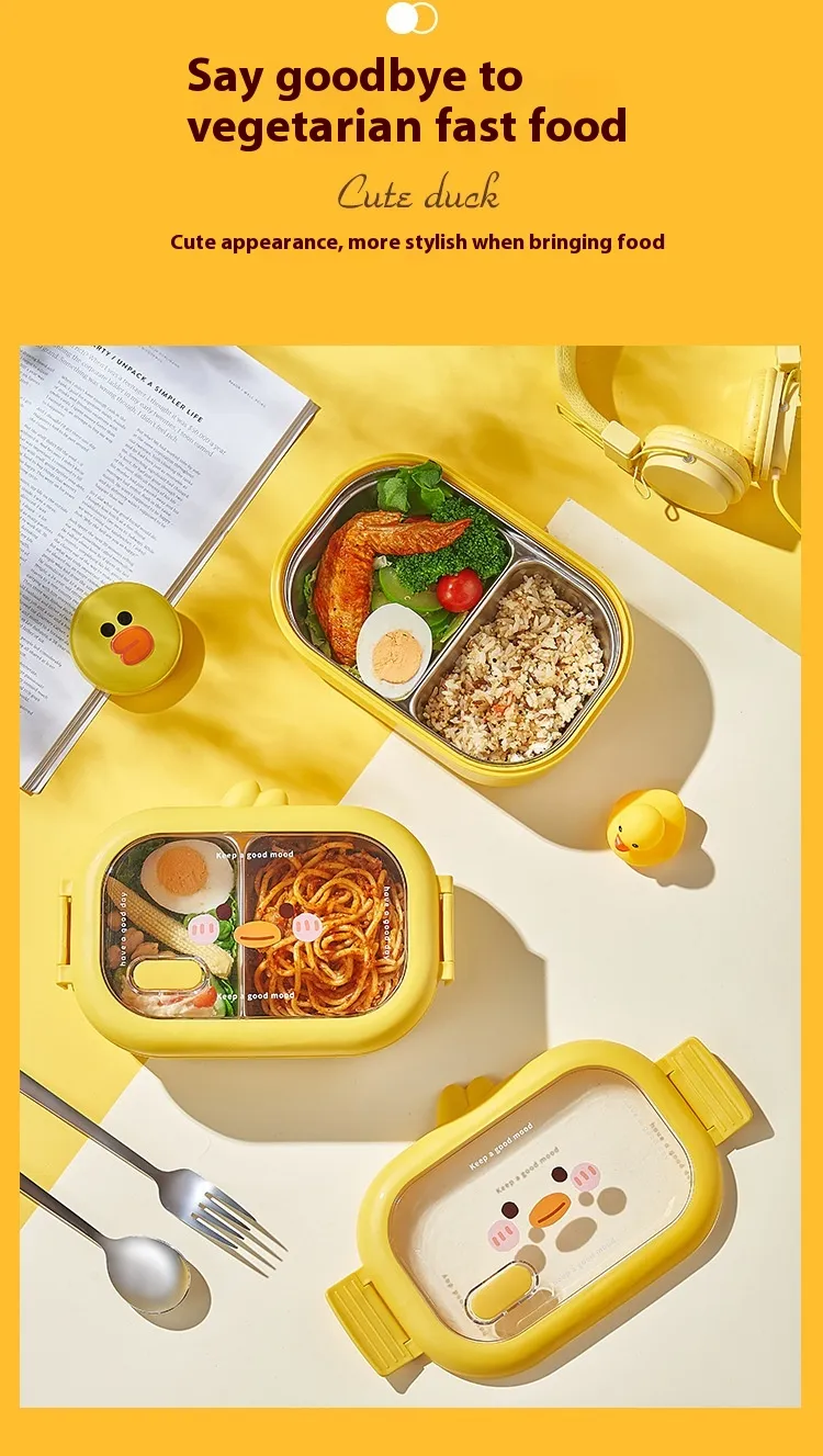 Wheat Cute Duck Stainless Steel Lunch Box Creative Compartment Thermal Box Portable