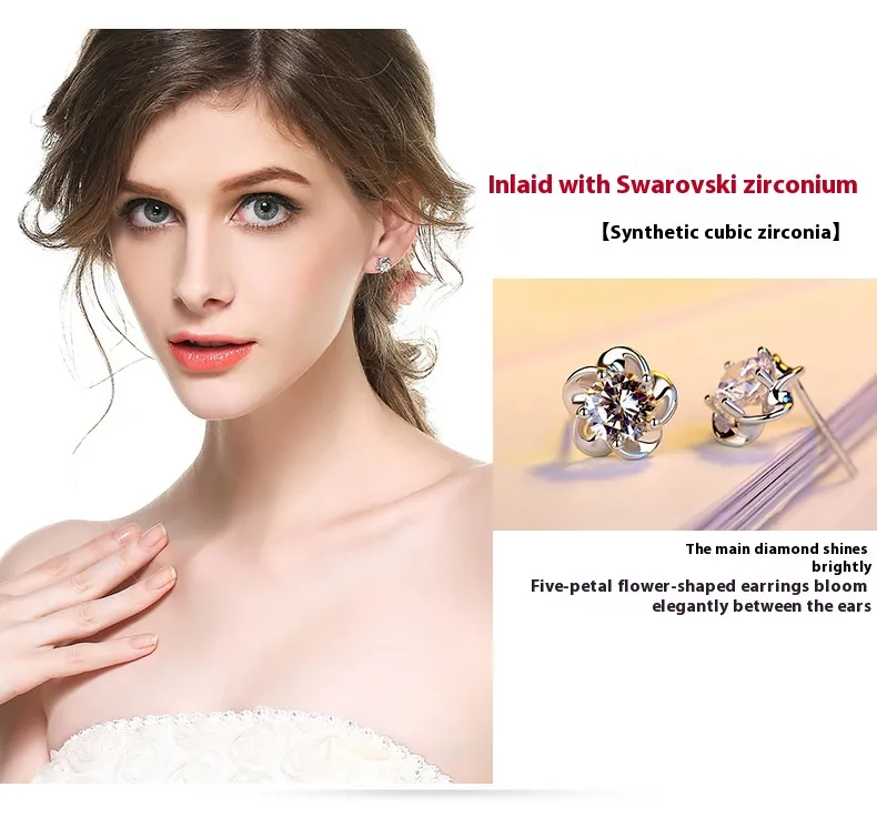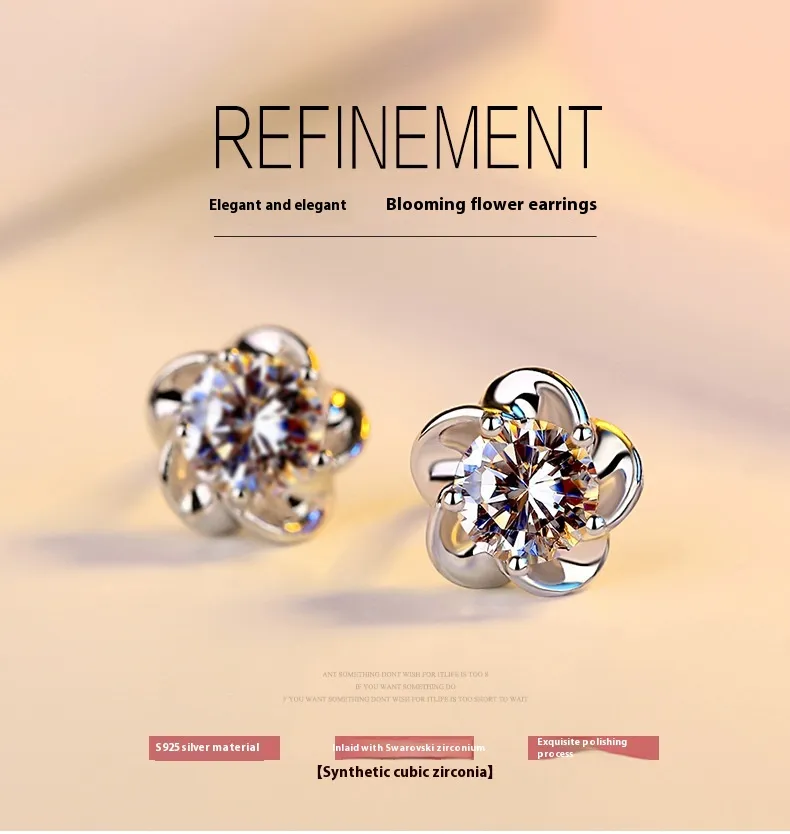 Elevate your accessory collection with the White Copper Silver-plated Peach Blossom Temperament Earrings, combining durability, elegance, and floral charm in a stylish piece that enhances any outfit.