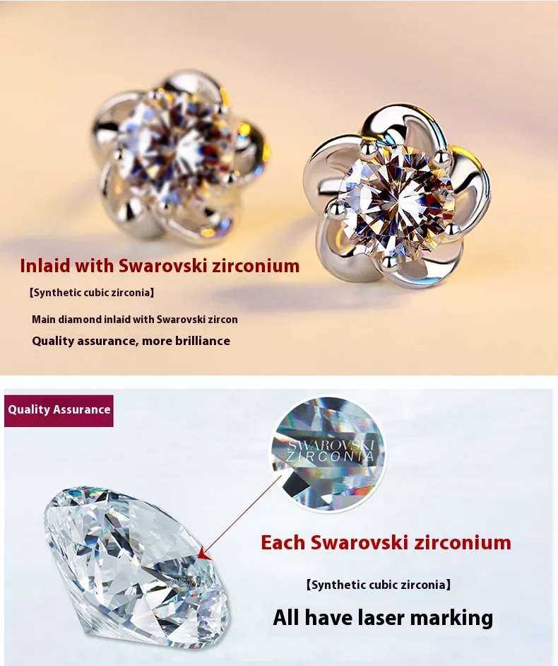 Color: Plum White Diamond Stud Earrings [with earplugs] 30% silver white copper white gold plated, plum purple diamond stud earrings [with