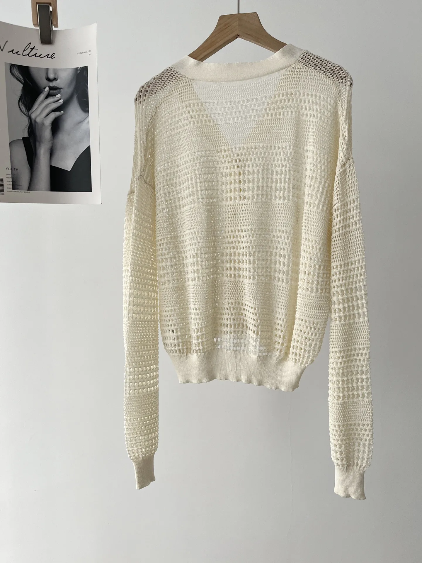 White Dignified Hollow Cardigan Outer Wear Sweater