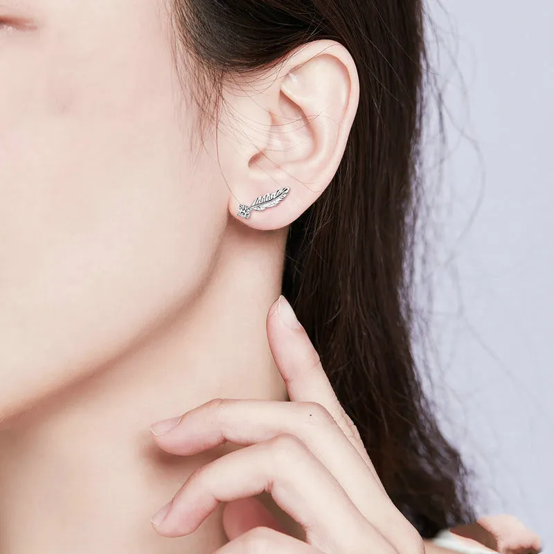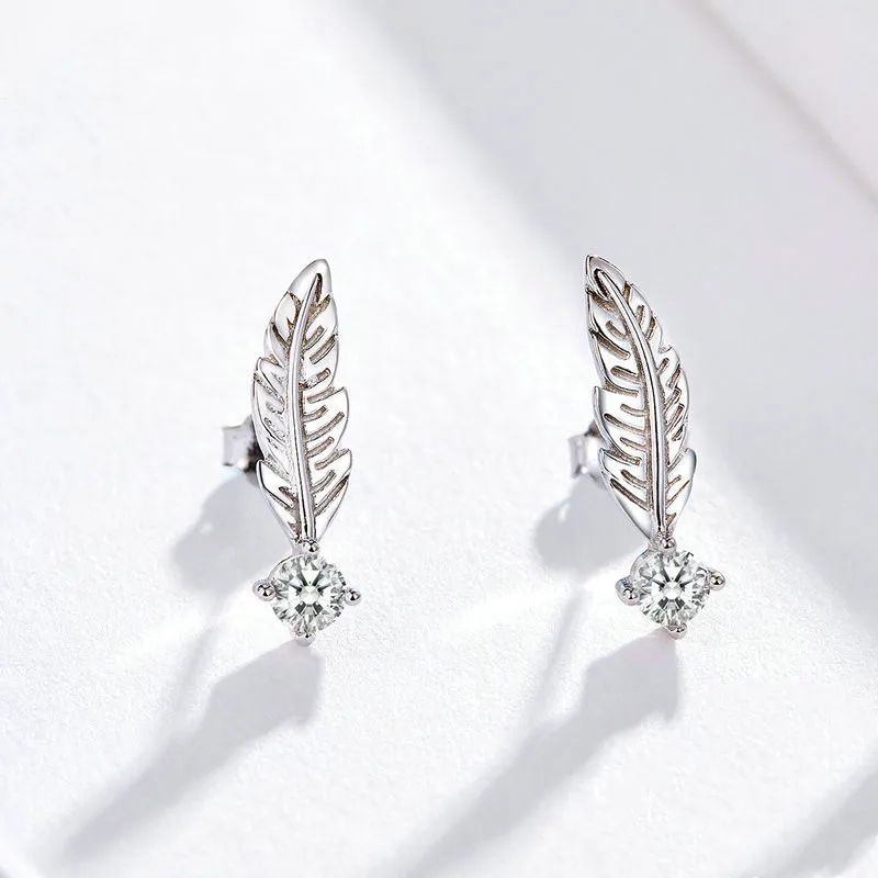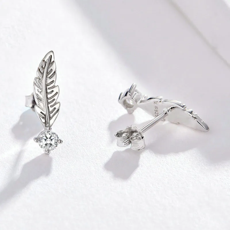 White Feather S925 Sterling Silver Stud Earrings: A Touch of Elegance