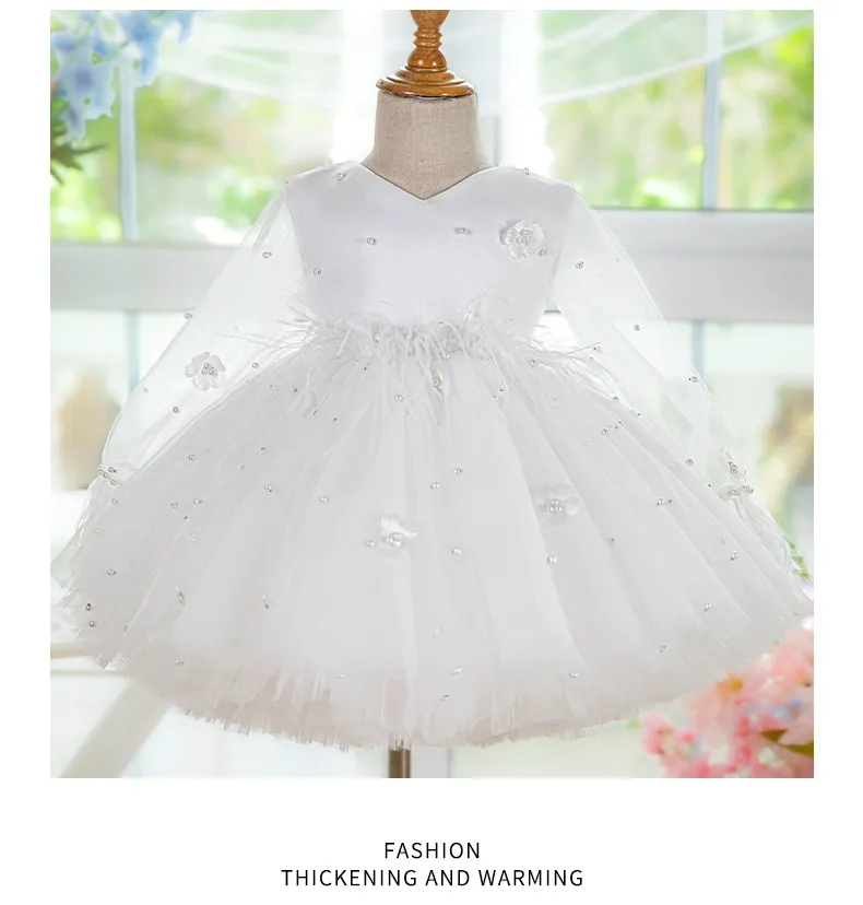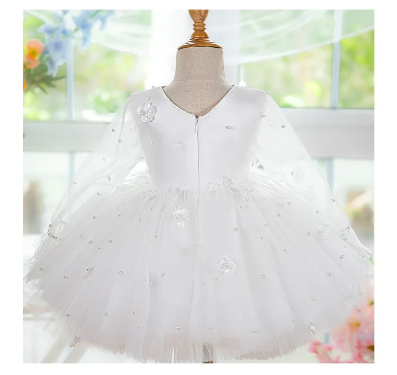 The White Girl One Year Old Celebration Dress Tulle Tutu Skirt is the perfect dress for celebrating your little one’s special milestone. This beautiful, elegant dress features a soft, breathable fabric and a playful tulle tutu skirt, creating an adorable and timeless look. Designed for comfort and style, this dress is ideal for first birthday parties, family celebrations, or any special event where you want your child to look as charming as ever.
