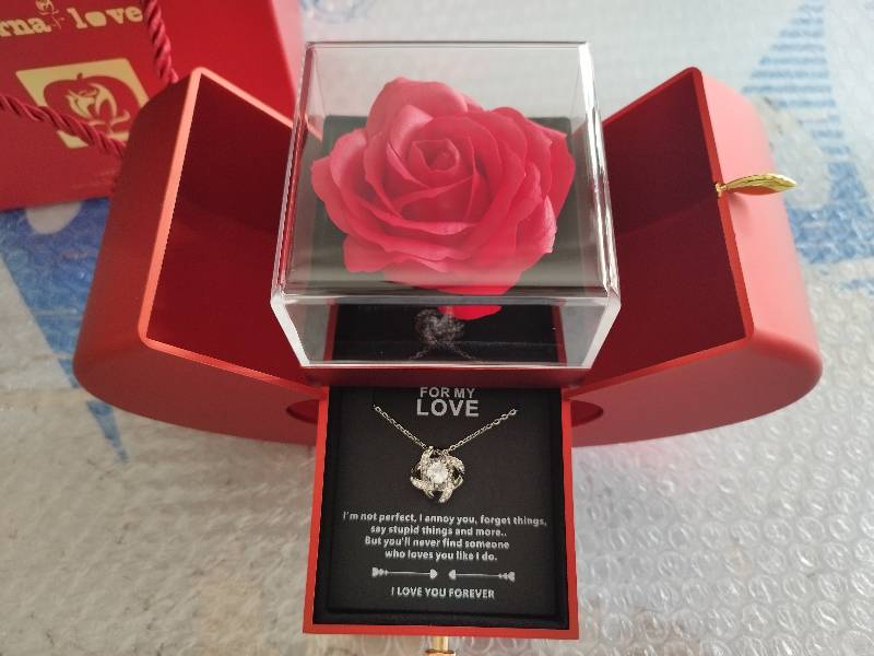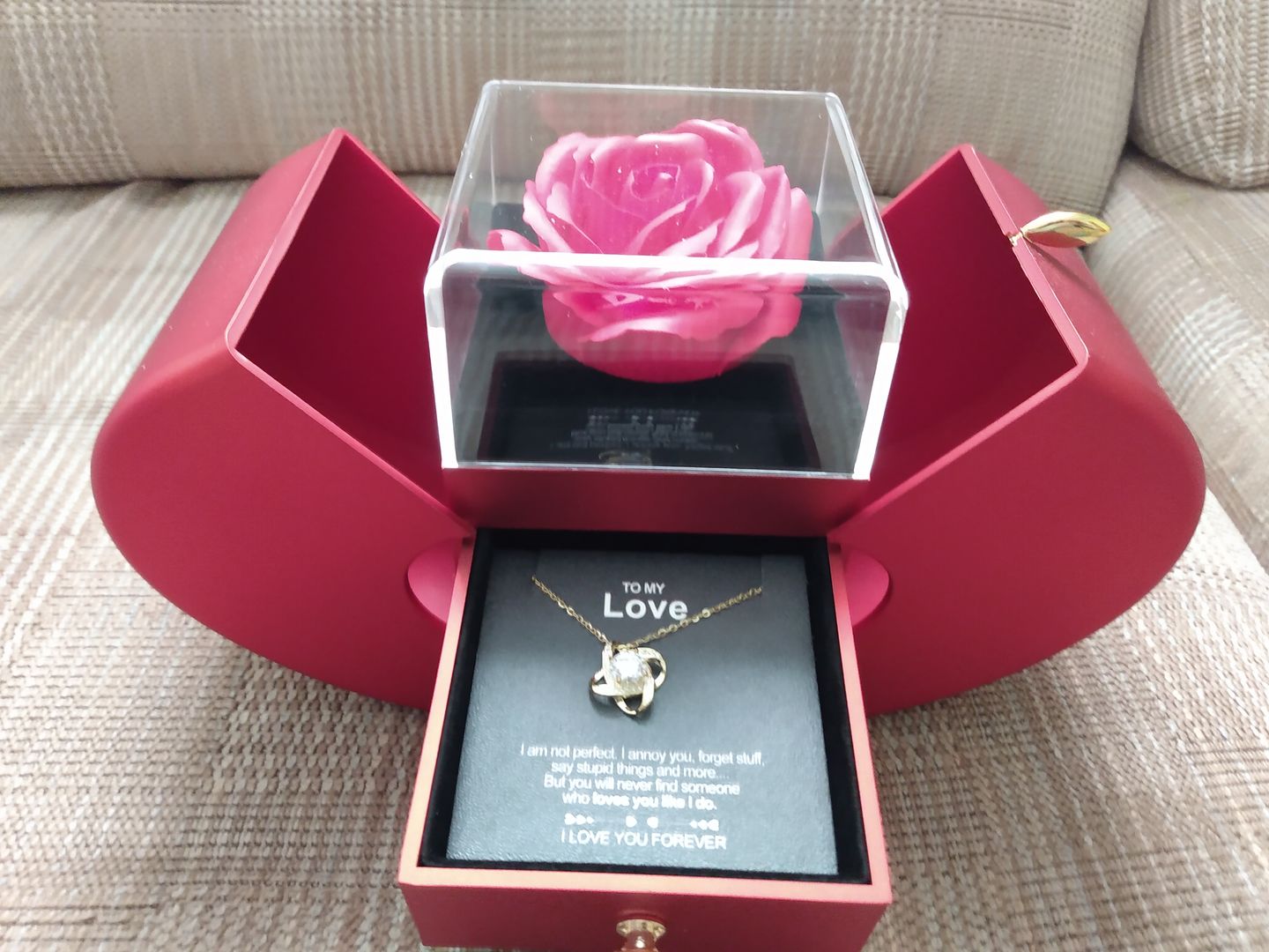 The necklace itself would warm your partners heart but adding in the personalized greeting card and rose will surely create a precious