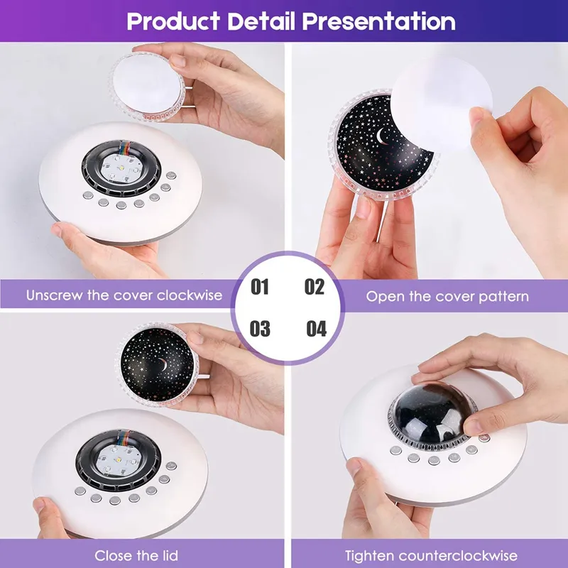 By providing a gentle light and soothing sounds, this night light helps your baby feel more secure and relaxed, making it easier for them to fall asleep and stay asleep. It creates a peaceful environment that encourages healthy sleep habits.