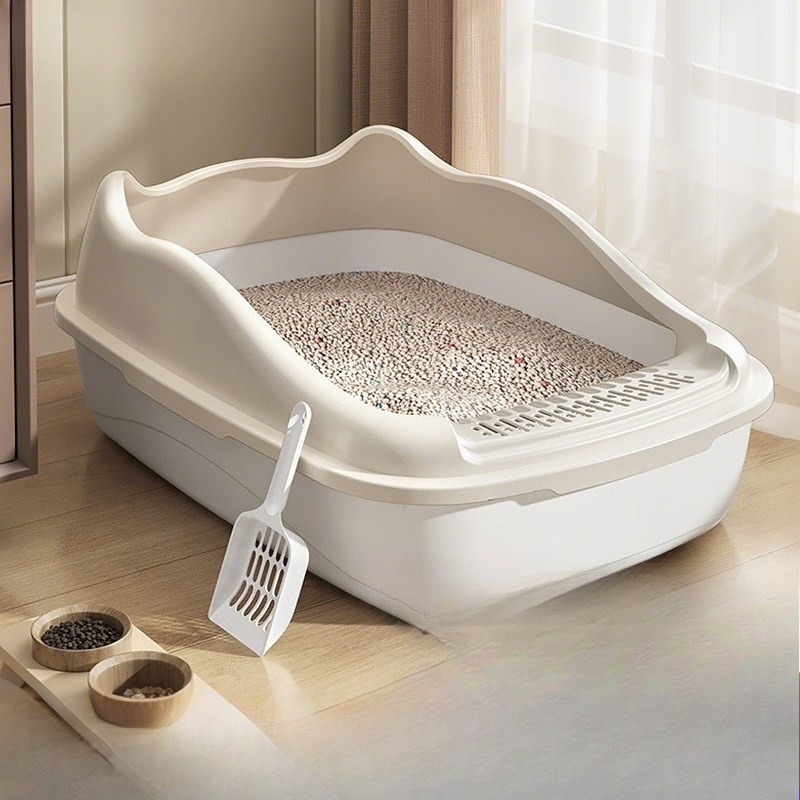 Its open-top design improves airflow and visibility, helping cats feel safe and relaxed while also making it easier for owners to monitor cleanliness. The high side walls and front splash guard help contain litter scatter, keeping your floors cleaner and reducing mess around the box.