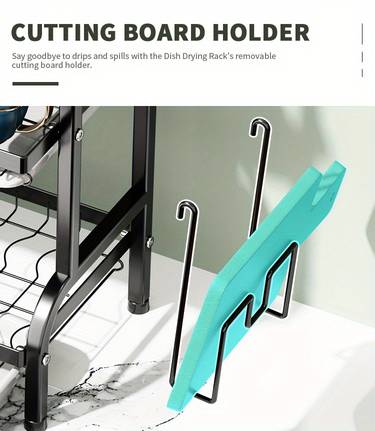 The WIEZ Dish Drying Rack is made from high-quality metal, offering strength, stability, and long-lasting durability. Each level provides spacious room for plates, bowls, mugs, glasses, and utensils. The rack also includes a cutting board holder and tableware side rack for organised drying and storage.