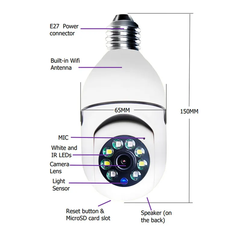 clock.Whether you want to monitor your front door, garage, or living room, this camera bulb provides a simple yet effective