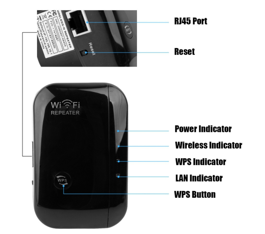 1x Wireless WiFi Repeater  1x RJ-45 Networking Cable  1x Installation Guide