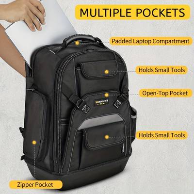 WINHUNT Large Capacity Electrician Backpack Durable Tool Bag with Multiple Compartments and Padded Straps