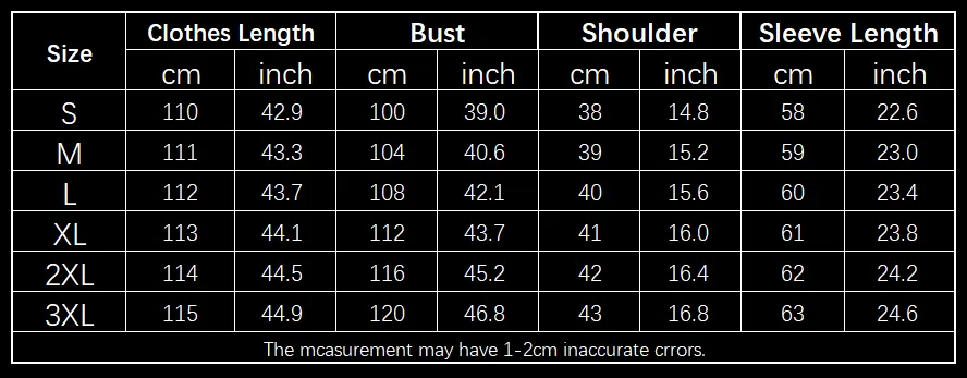between two sizes. Please allow 2-3cm differences due to manual measurement.