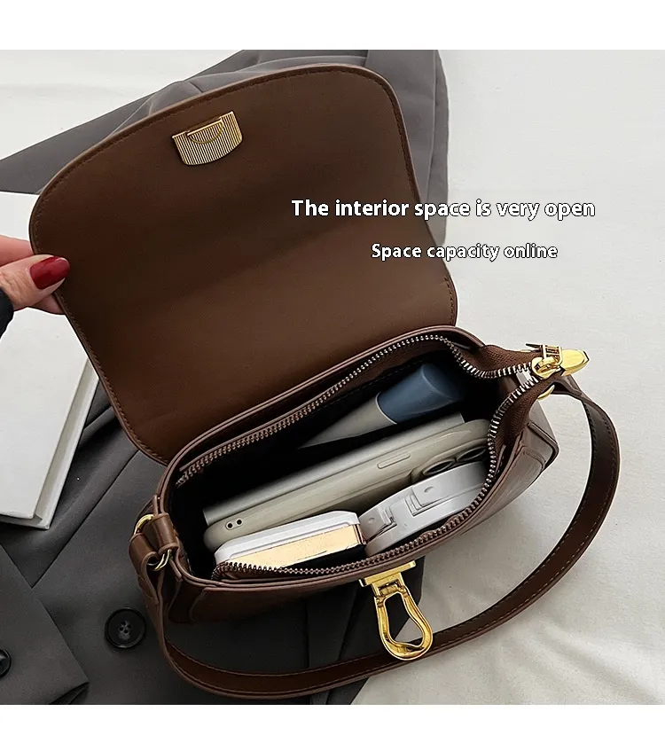 Despite its minimalist exterior, this bag is surprisingly spacious. It provides enough room to store your essentials—phone, wallet, keys, makeup, and even a small book or tablet—without feeling bulky or cumbersome. The interior is thoughtfully designed to keep your items organized and easily accessible.