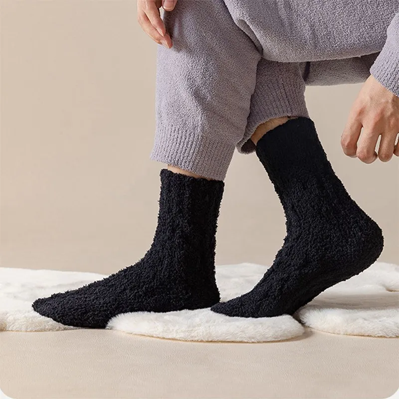 These socks are crafted from high-quality coral fleece, providing a plush, velvety texture that feels incredibly soft against the skin. The