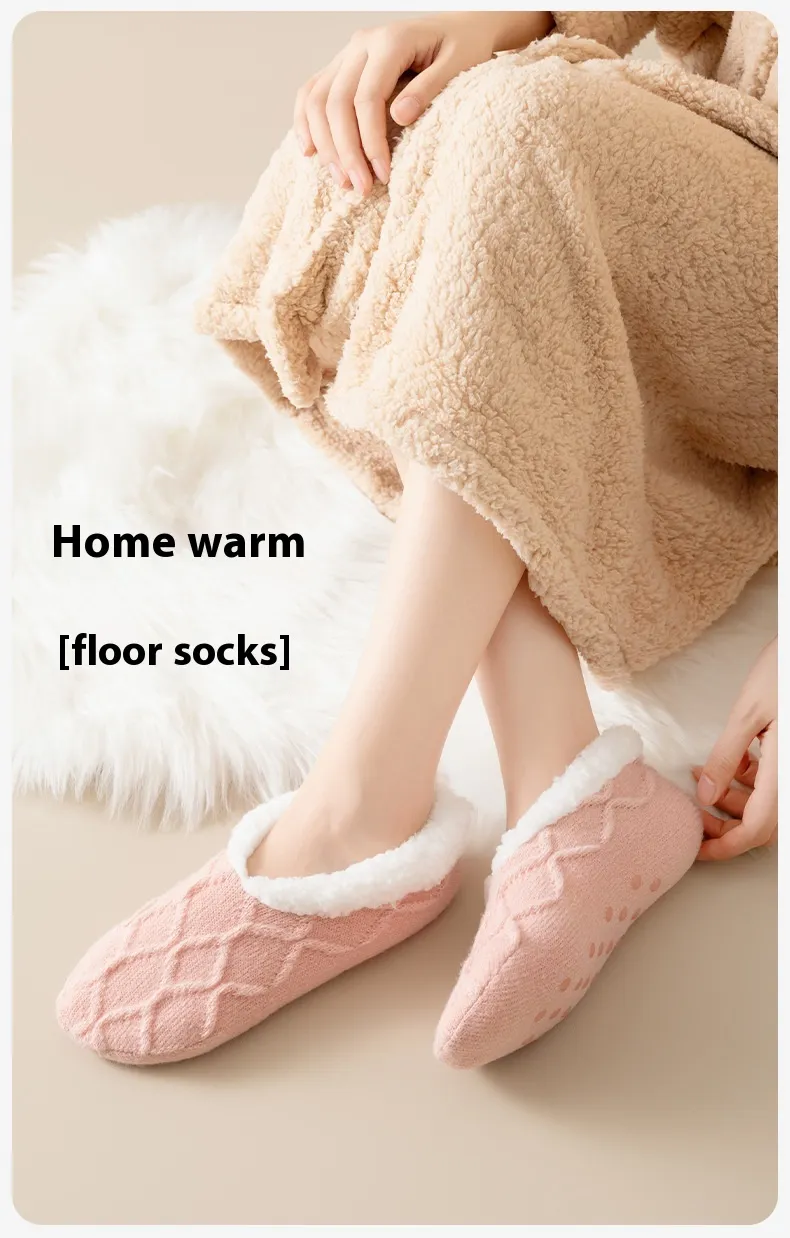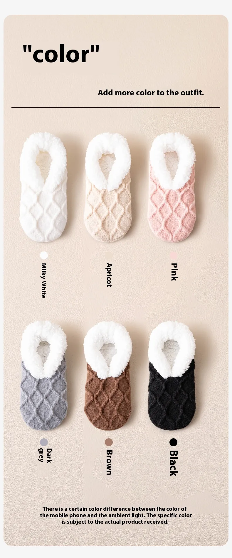 plush lining, non-slip rubber point socks bottom, solid color, diamond pattern