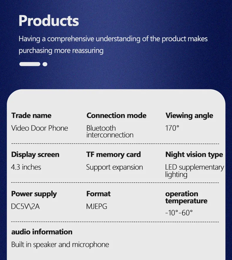 The Wireless Doorbell Camera is a must-have for anyone looking to boost their home security. With features like 1080P video, a wide-angle lens, night vision, and a 4.3-inch screen, it provides an all-around solution for monitoring your front door and ensuring peace of mind. Its IPX65 waterproofing makes it ideal for all weather conditions, while the wireless functionality ensures easy installation and use.