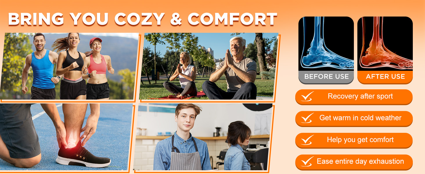 Pain Relief & Relaxation: The combination of heat and massage helps to alleviate ankle pain, reduce muscle tension, and