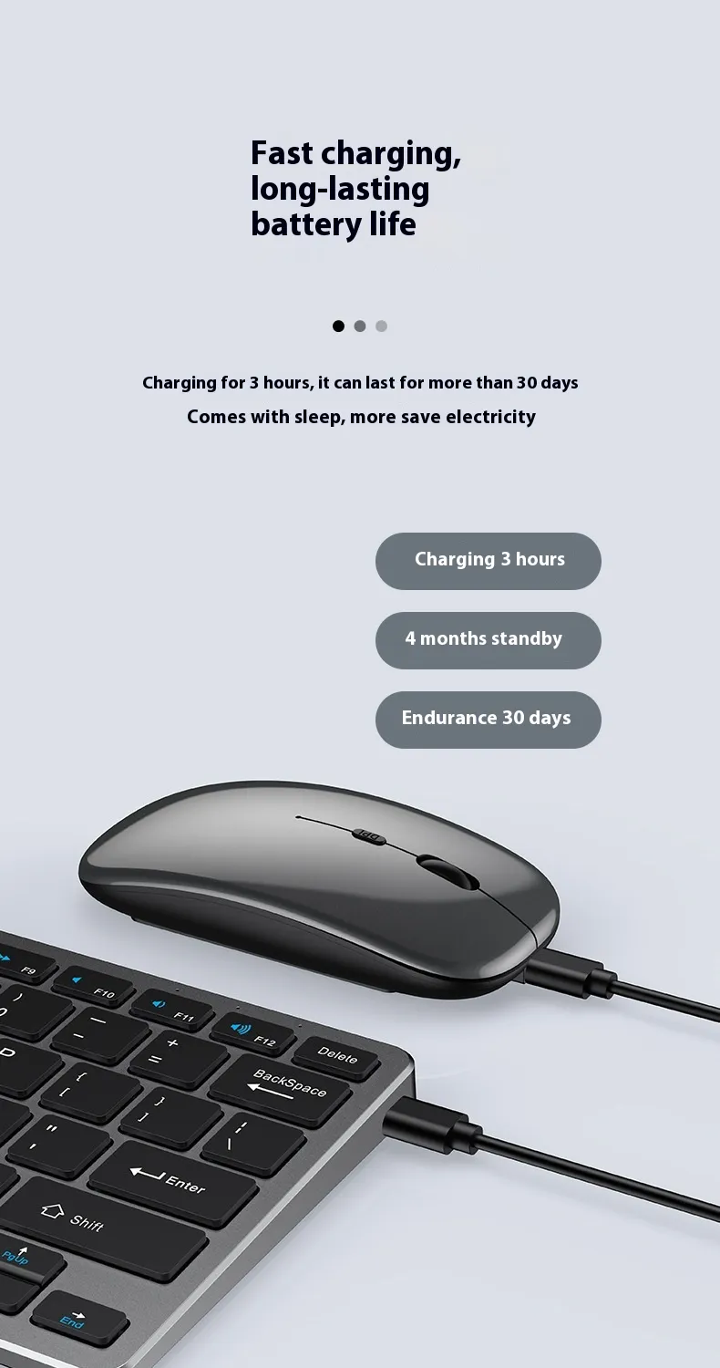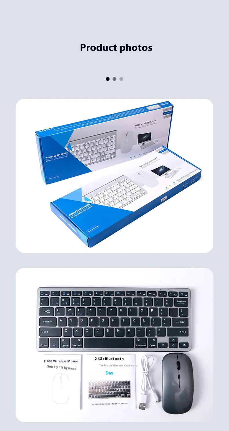 Experience the perfect blend of style, functionality, and comfort with the Wireless Keyboard Mouse Ultra-thin Suit Rechargeable Mute Bluetooth. Designed to provide an exceptional typing and navigation experience, this ultra-thin Bluetooth keyboard and mouse set is ideal for home offices, workspaces, and on-the-go professionals. With rechargeable functionality and mute operation, you can work or play without the distractions of noise or frequent battery changes.