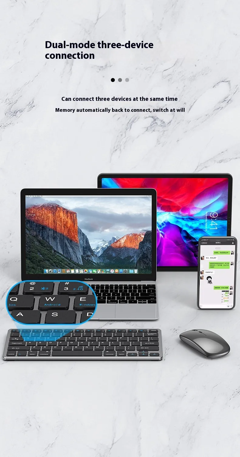 Enjoy the convenience of wireless Bluetooth connectivity with the keyboard and mouse. Say goodbye to tangled cables and limited movement, as the Bluetooth connection allows for fast, stable pairing with a variety of devices such as laptops, tablets, and smartphones. With the ability to connect easily to your devices, this wireless setup ensures smooth, uninterrupted performance without the hassle of USB receivers or adapters.