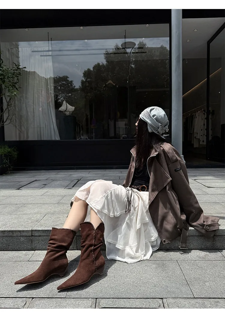 The Woman Cowboy Boots are a type of ankle‑to‑mid‑calf boot characterised by a pointed or rounded toe, a moderately high stacked heel, and decorative stitching or tooling. Traditionally handcrafted from quality leather — such as cowhide, suede, or exotic hides — these boots are engineered to be both functional and fashionable. Their design originated from riding and ranch work, where the slightly angled heel helped secure the foot in stirrups and the tall shaft provided protection while moving through rugged terrain. Today, while many women wear cowboy boots as part of a Western ensemble, others integrate them into modern, urban outfits — pairing them with jeans, skirts, dresses, or tailored trousers.