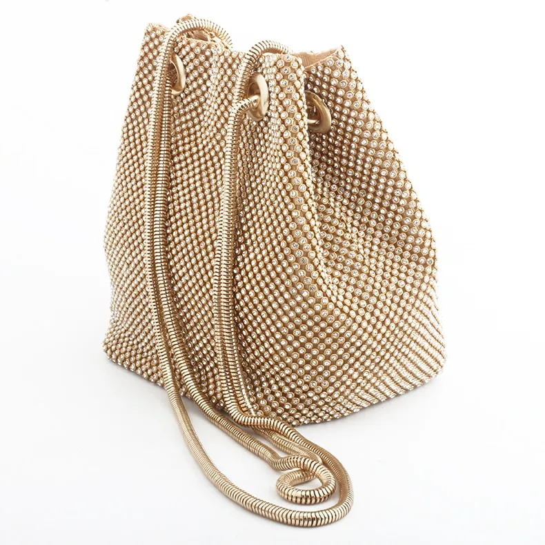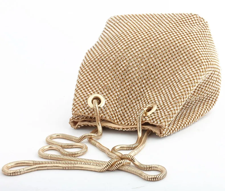 Women Crystal Diamond Clutch Bags String Satin Crossbody Bag Glitter Evening Bags Gold Clutch Party Purse Woman Handbag
