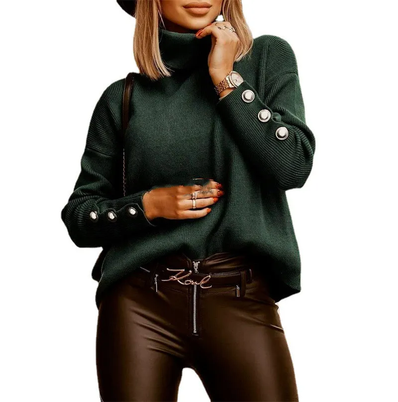 Women Solid Color Turtleneck Sweater Fashion Winter Tops
