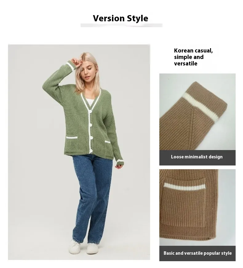 V-Neck Knitted Sweater Coat, Women's Color Matching Sweater, Long Sleeve Sweater Coat, All-Match Knitted Coat for Women, Knitted Sweater with Pockets, Casual Sweater Coat for Women, Stylish V-Neck Sweater Coat, Color-Block Knit Sweater, Cozy Women's Knitted Coat, Long Sleeve Knit Sweater, Knitted Sweater Coat for Winter, Functional Pocket Sweater Coat, Fashionable V-Neck Sweater Coat, Women's Versatile Sweater Coat, Warm and Stylish Knitted Coat.
