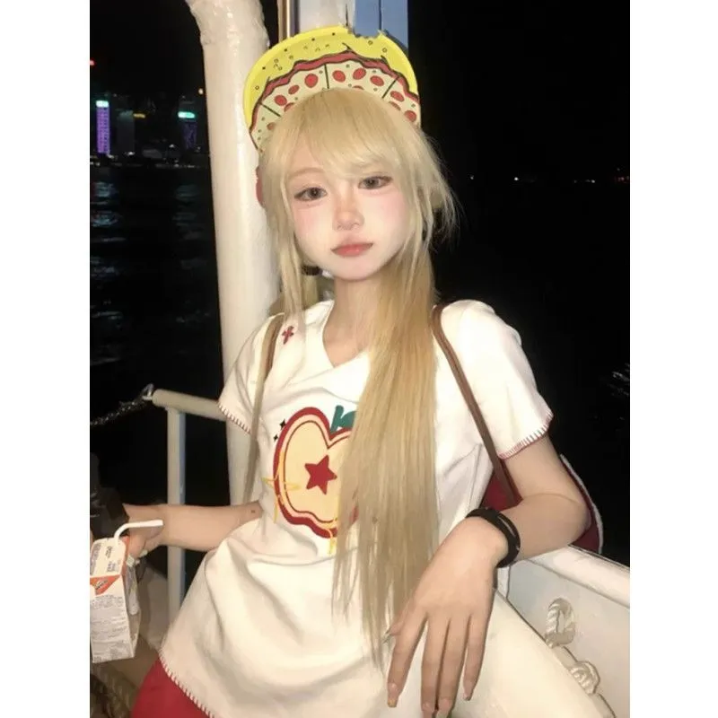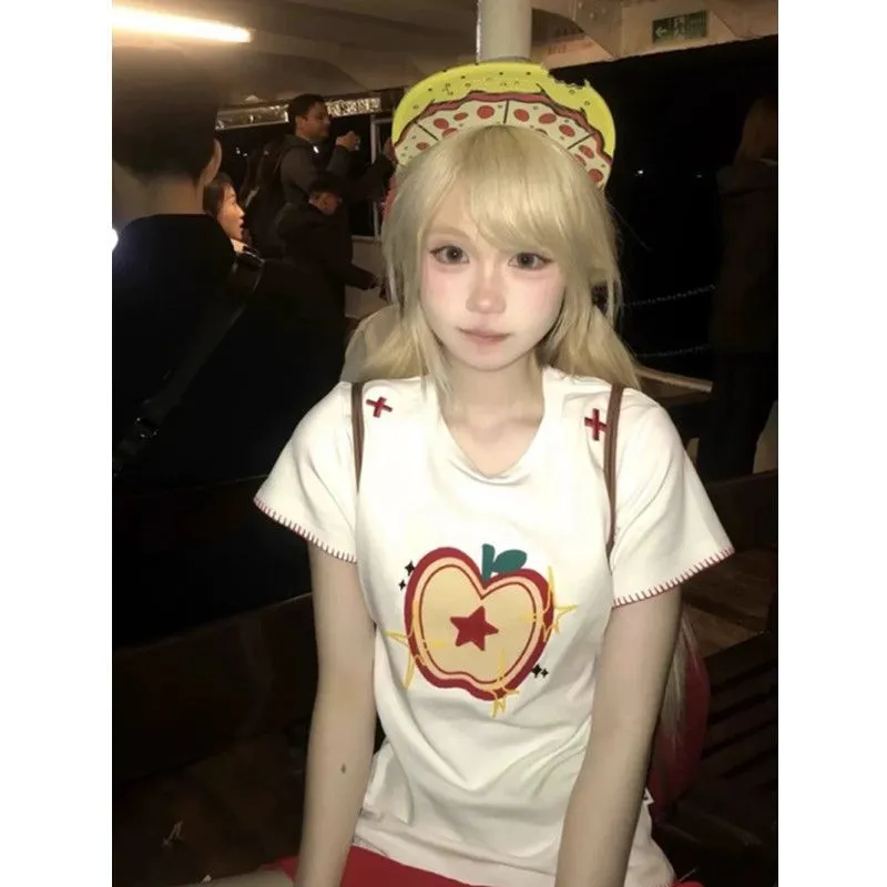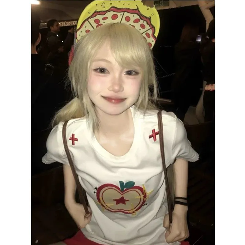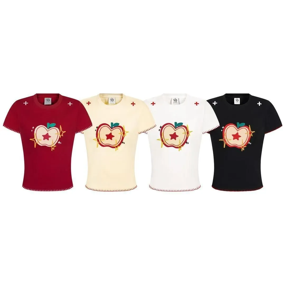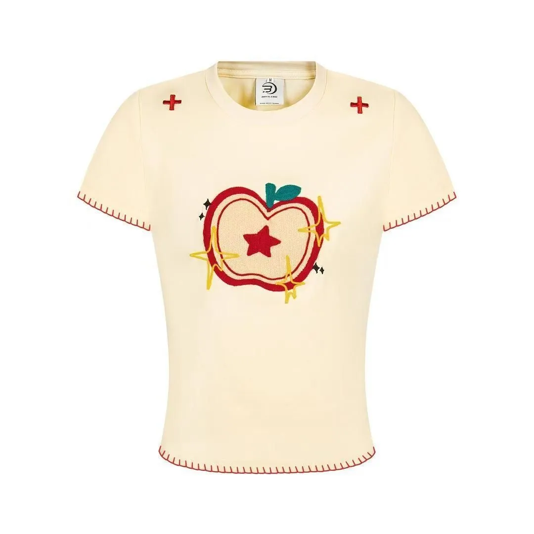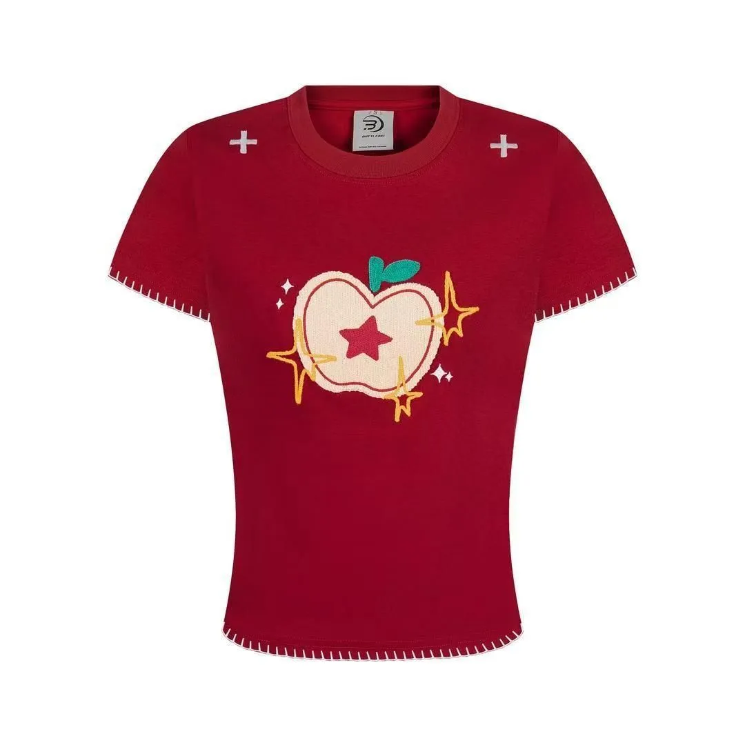 Featuring playful and chic embroidery, this T-shirt adds personality and charm to any outfit. The “sweet and spicy” motif creates a fun and fashionable aesthetic that stands out in everyday wear.