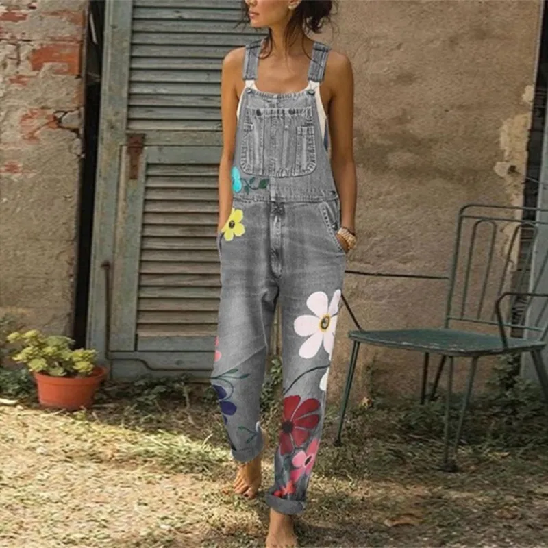 Shop the Women's Classic Denim Overalls with a high-waisted, loose fit and unique print design. Perfect for casual wear, weekends, and effortless style.