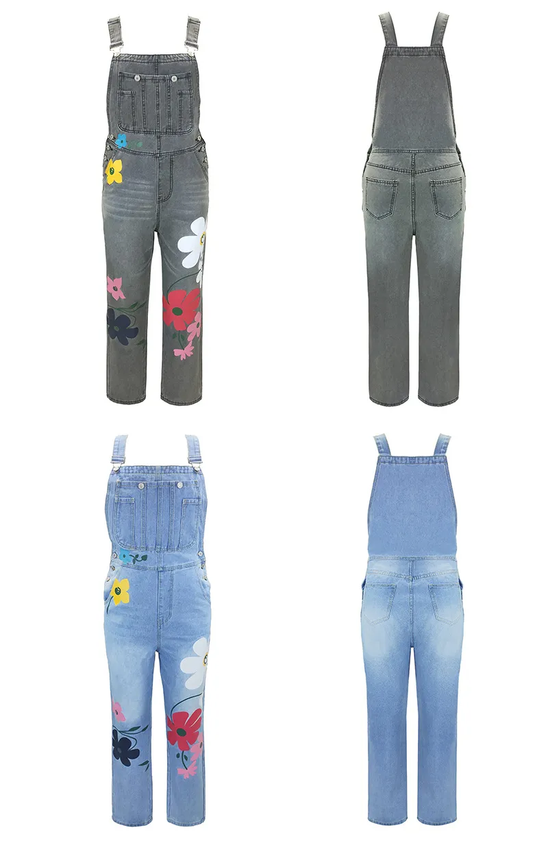 The Women's Classic Denim Overalls stand out for their perfect combination of style, comfort, and durability. The high-waisted, loose fit design ensures ease of movement, while the straight-leg cut gives it a timeless feel that suits any occasion. With a unique print design that adds personality, these overalls are more than just a casual piece—they’re a fashion statement.