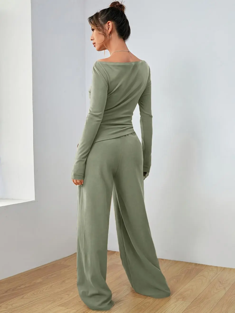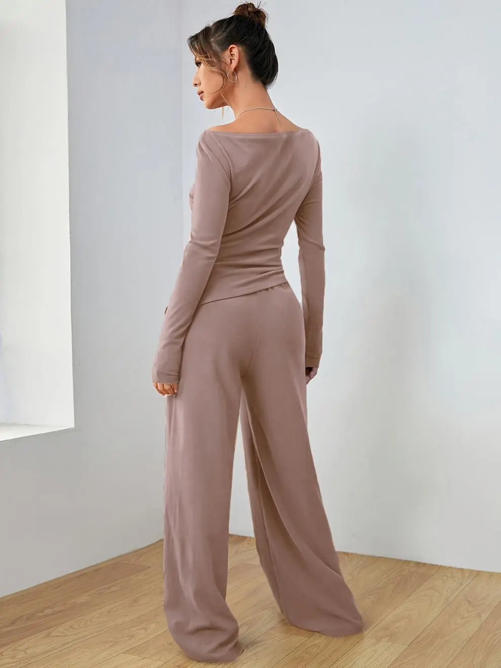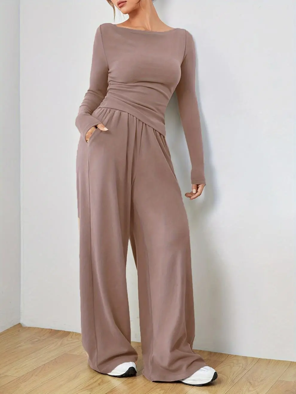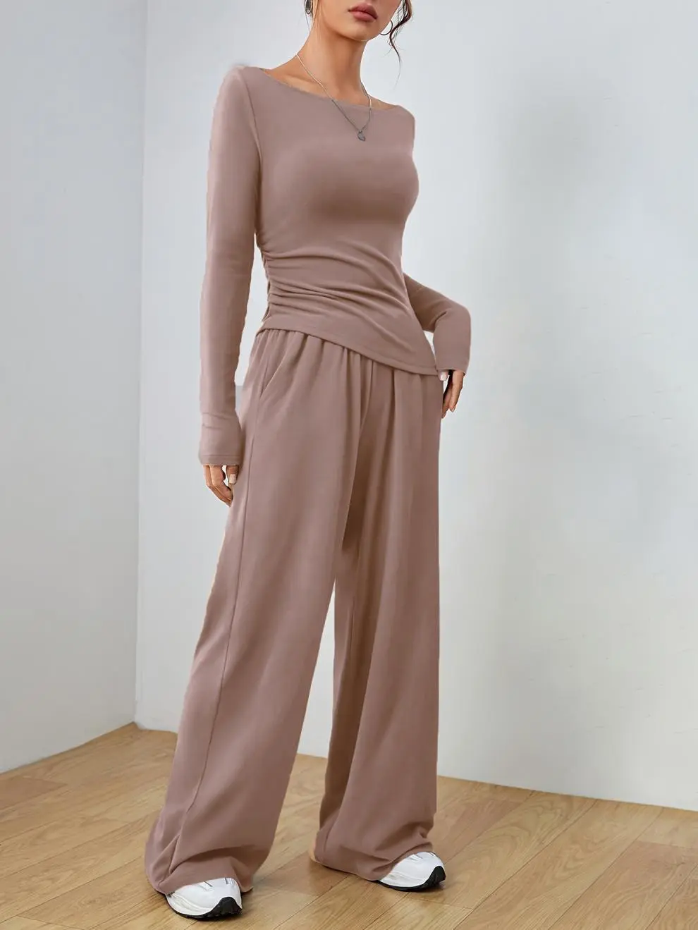 This casual suit is perfect for various settings, including work, casual day outings, or even semi-formal events. Its minimalist yet stylish design ensures you look chic and feel comfortable, no matter the occasion. The long sleeves and breathable fabric make it ideal for transitional seasons like spring and fall.