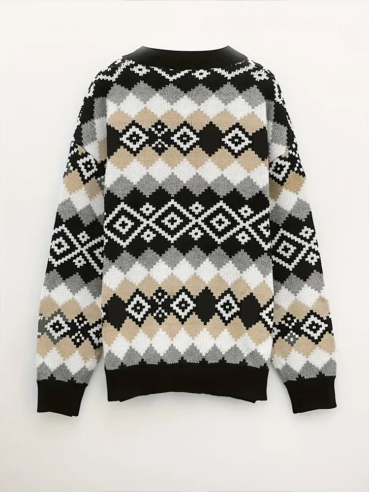 Loose and Relaxed Fit: The sweater features a loose, oversized fit that ensures comfort and freedom of movement while