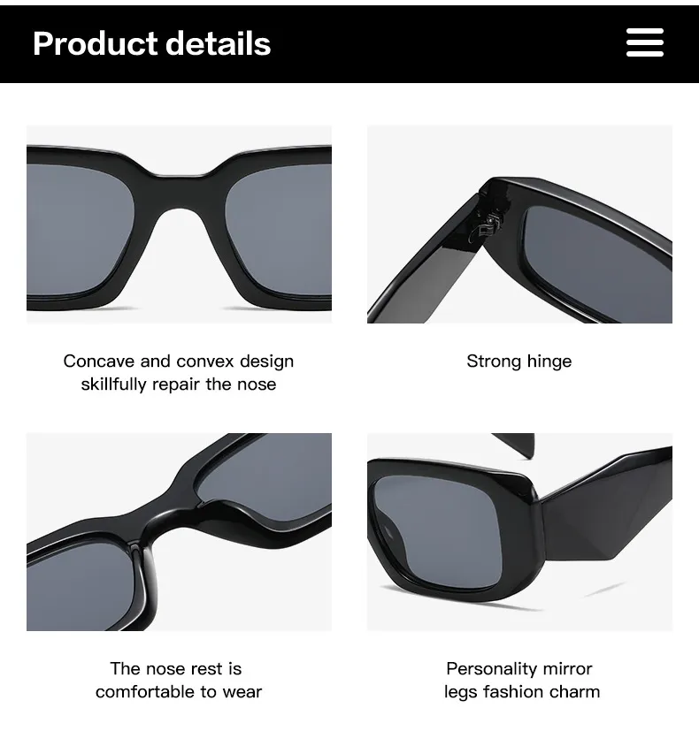 Stand out with a unique geometric twist on the classic square frame. The irregular angles and bold edges add a touch of individuality to your outfit, making these sunglasses the perfect statement accessory for fashion-forward women.