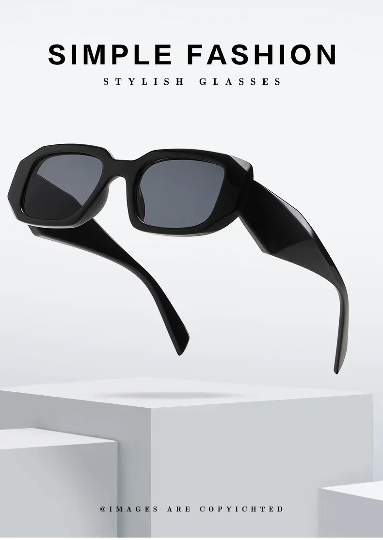 Stand out with a unique geometric twist on the classic square frame. The irregular angles and bold edges add a touch of individuality to your outfit, making these sunglasses the perfect statement accessory for fashion-forward women.