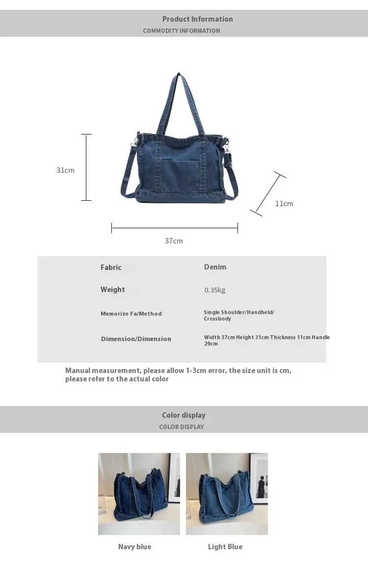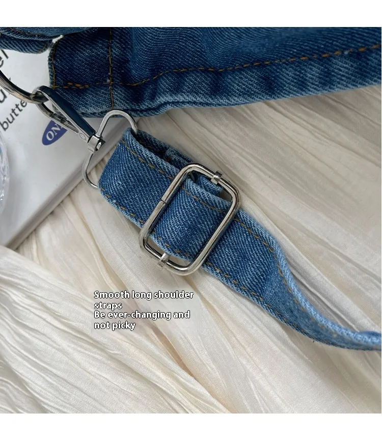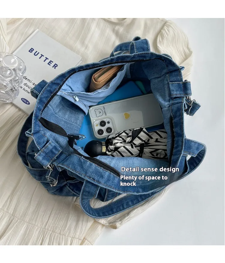 Crafted from high-quality denim, this handbag is designed to withstand daily wear and tear, while offering a soft and comfortable texture. The large capacity ensures you have enough space for all your essentials, from your wallet and phone to makeup and snacks. The shoulder straps offer comfort during extended use, while the versatile design makes it easy to pair with a variety of outfits.