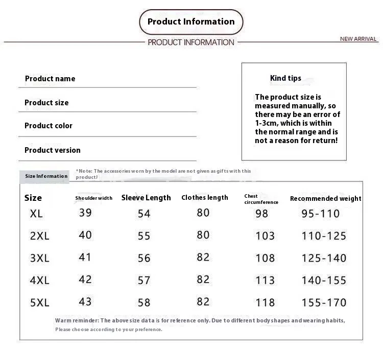 Size: XL,2XL,3XL,4XL,5XL
