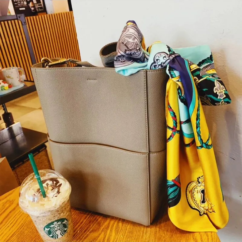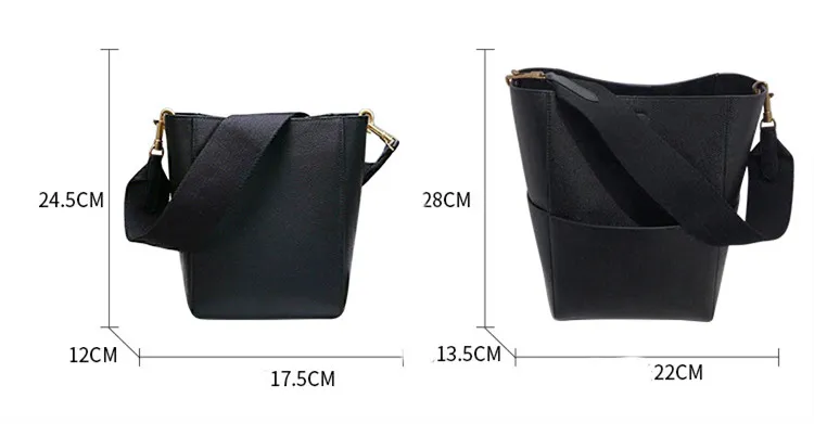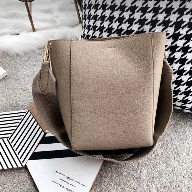 Women's Fashion All-match Wide Shoulder Strap Cowhide Bucket Bag