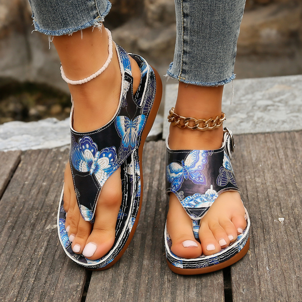 Breathable Material Made from breathable materials, these sandals keep your feet cool and comfortable, even on hot summer days. The airy design promotes ventilation, preventing discomfort and sweating.