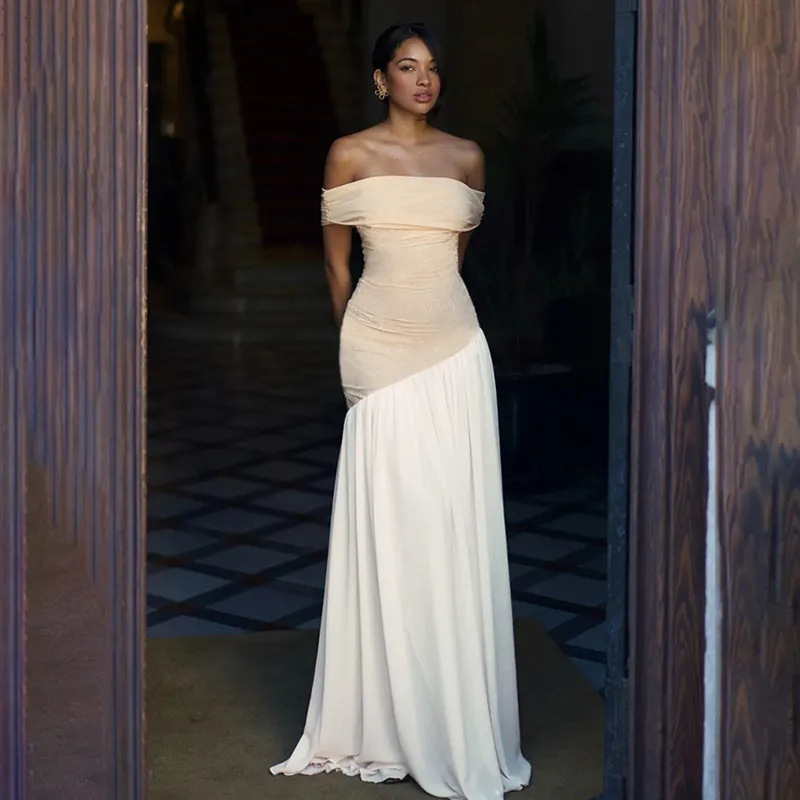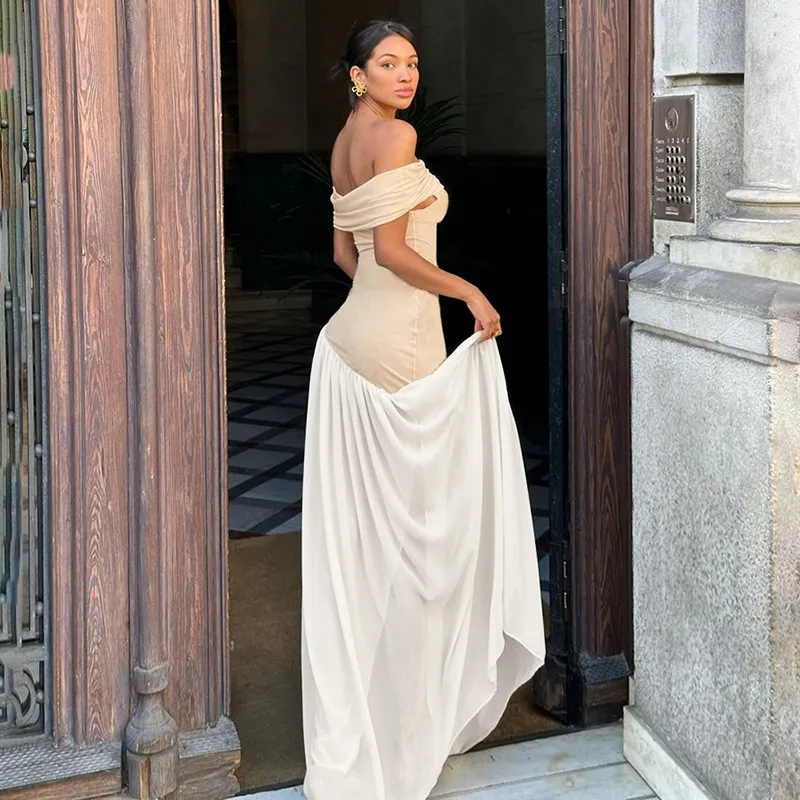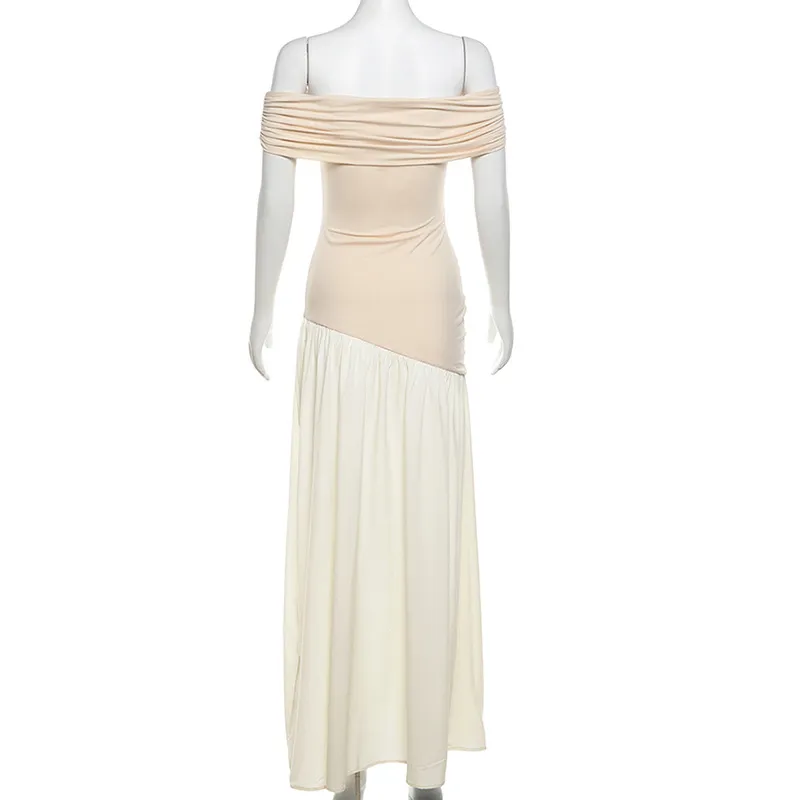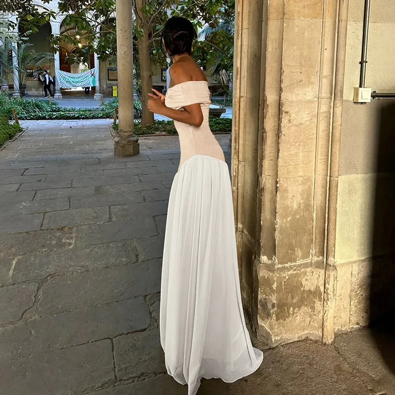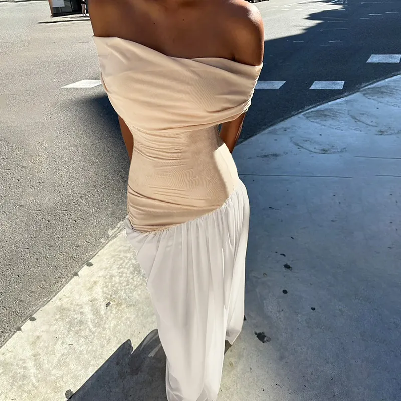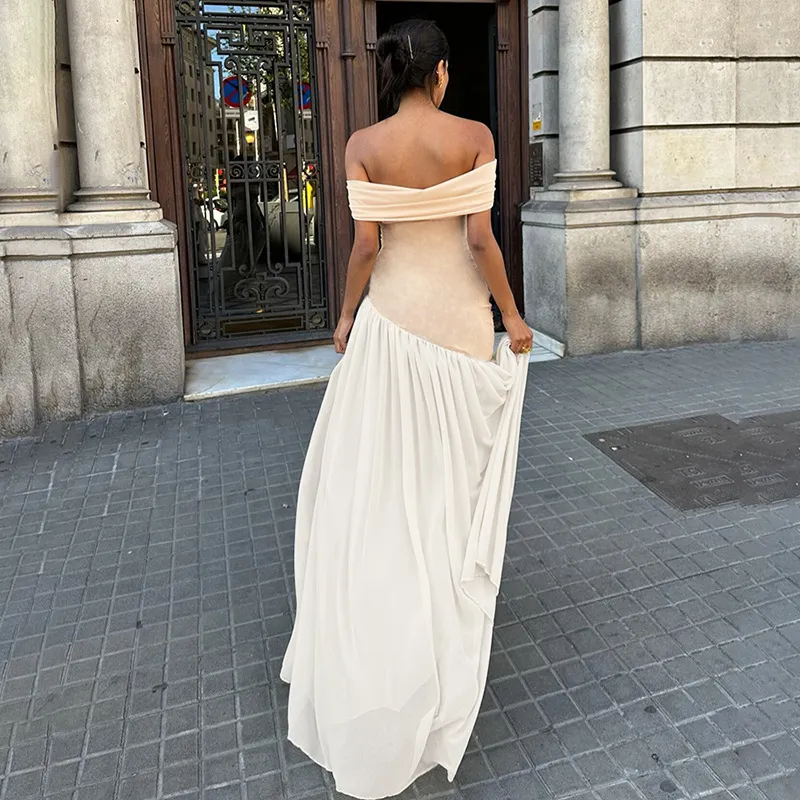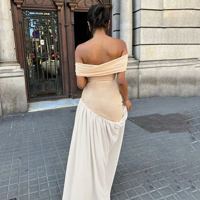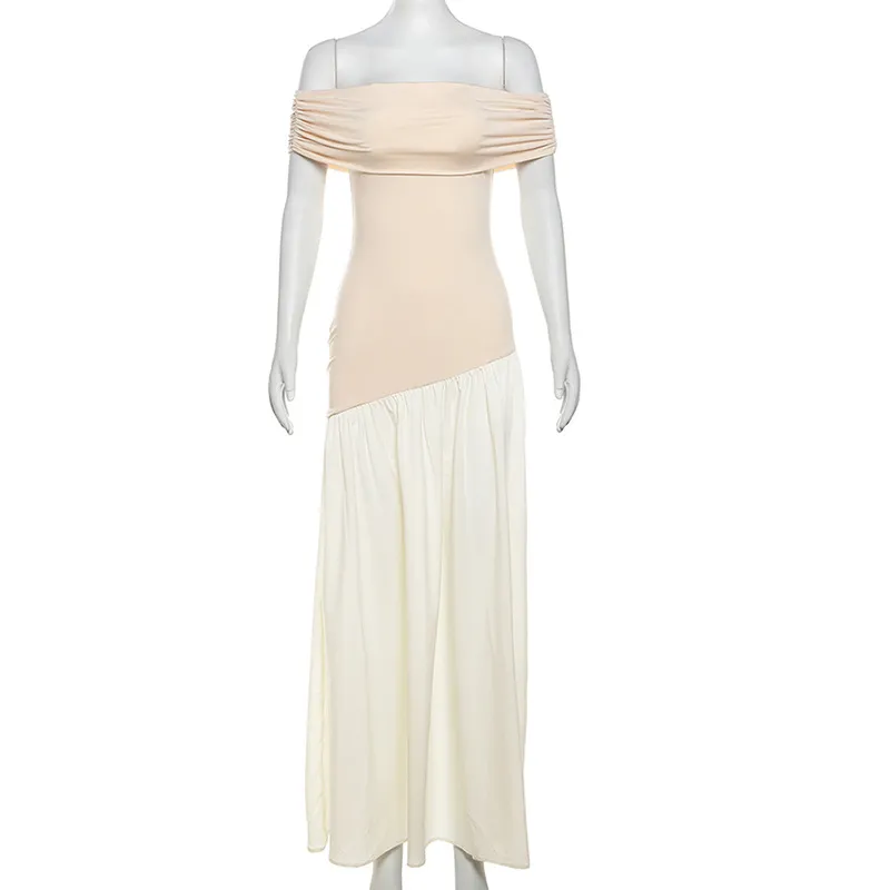 Women's Fashion Color Contrast Off-Shoulder Slim Fit Dress: Elevate Your Style