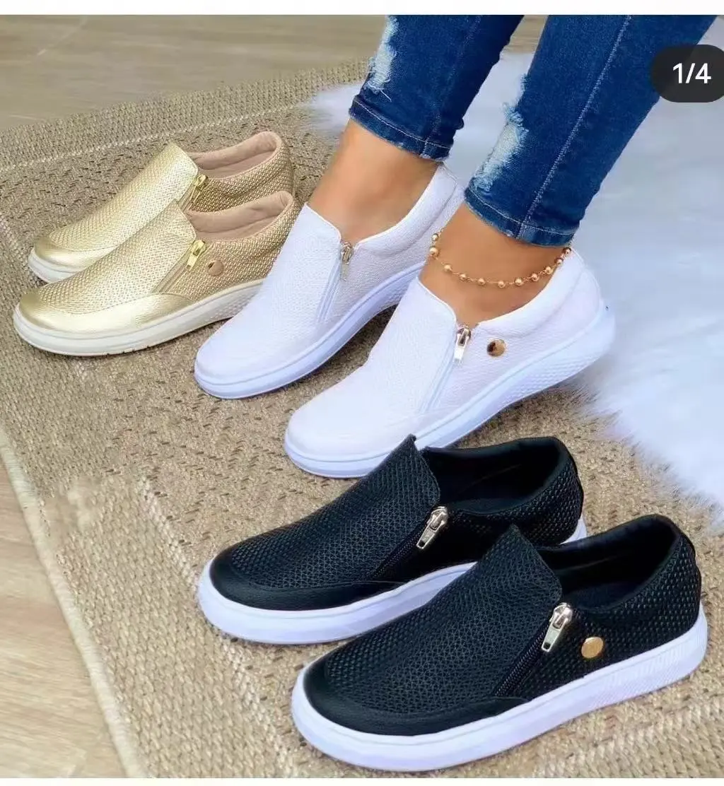 Women's Flats Sneakers Side Zipper Round Toe Walking Shoes Fall Spring