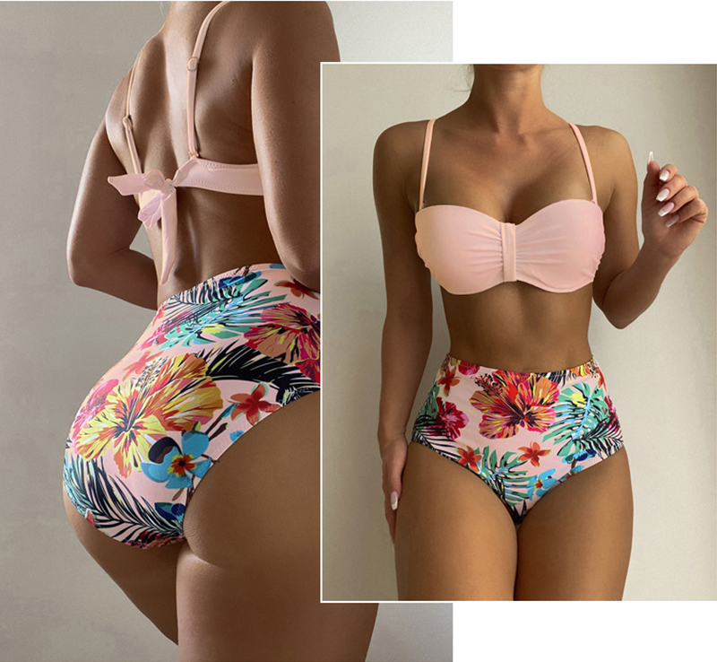Crafted from a blend of high-quality nylon and spandex, this bikini set offers a comfortable and flexible fit. The spaghetti strap design provides an adjustable fit for various body types, while the floral print adds a touch of elegance and femininity. The bikini top features a classic V-neckline and adjustable straps, while the high-cut bottoms provide a flattering silhouette.