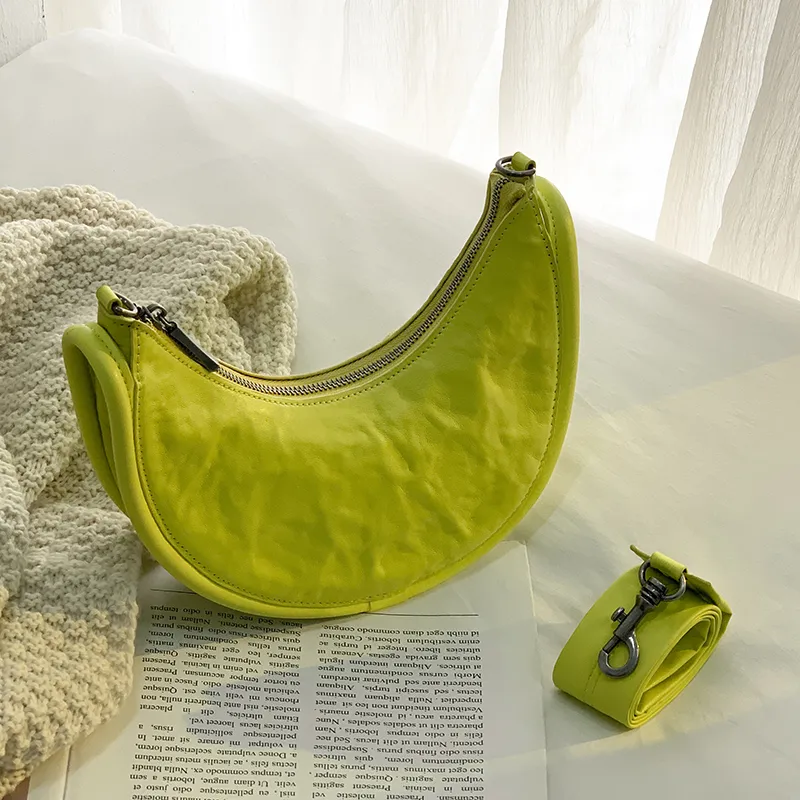Women's Folded New Top Layer Cowhide Crossbody Dumpling Bag