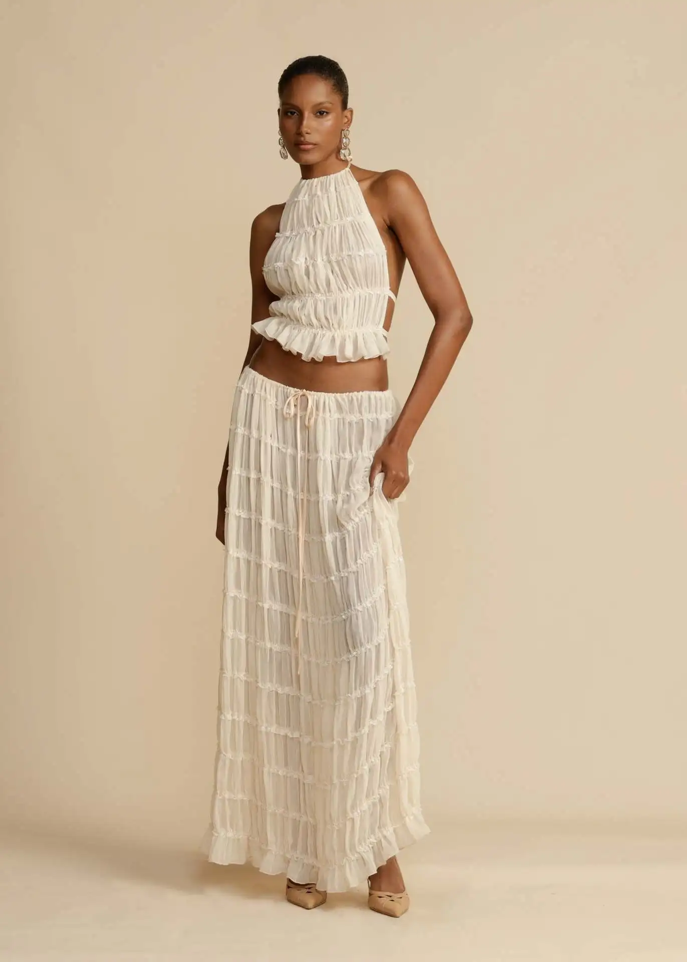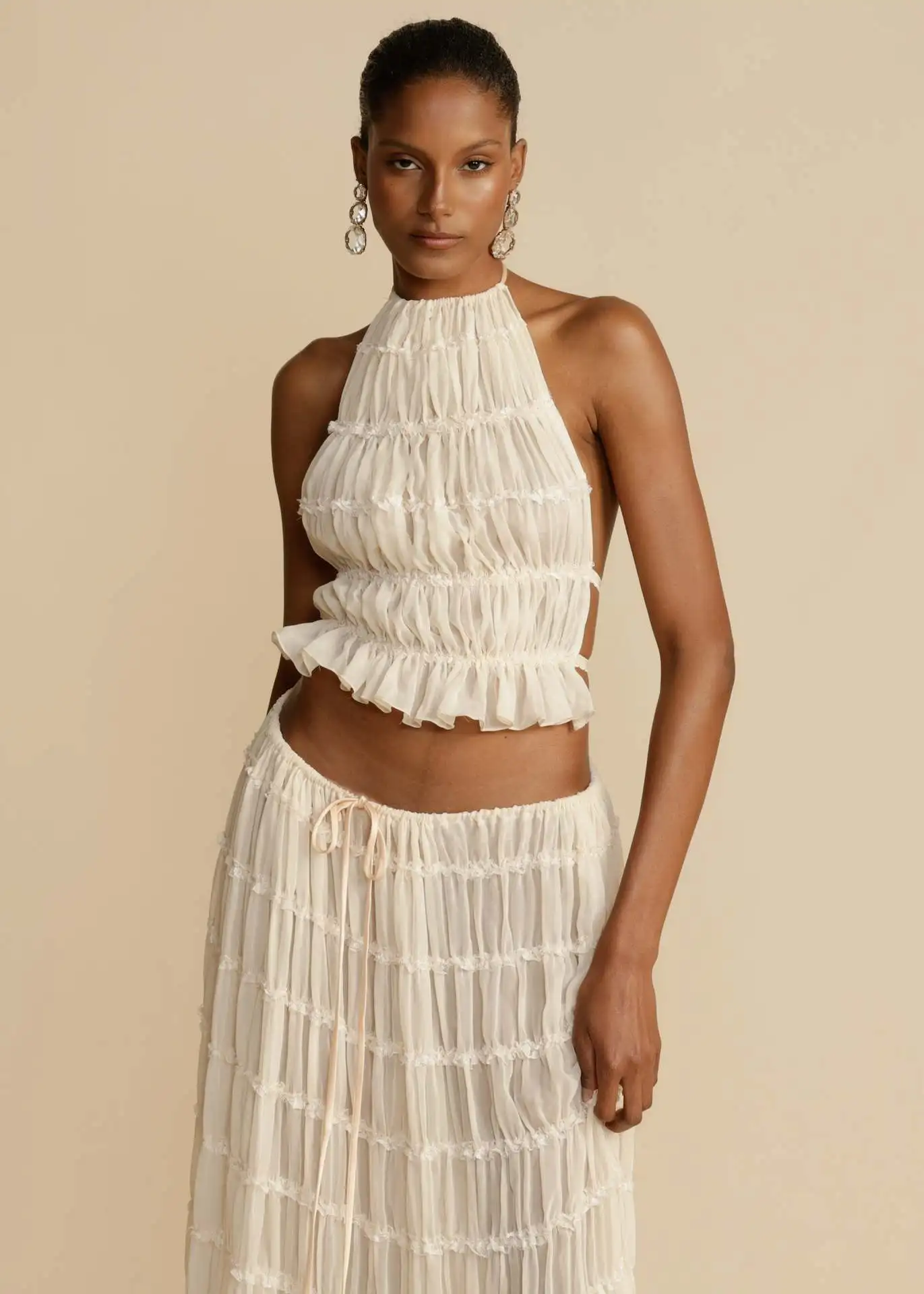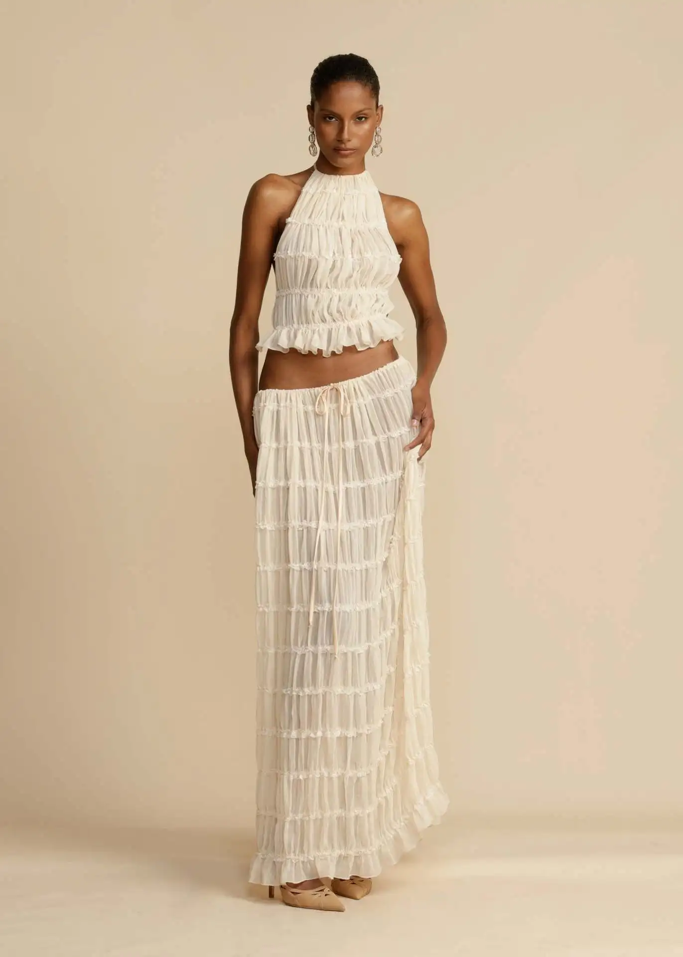 Ideal for those who appreciate versatile, on-trend pieces, this halter neck long skirt set is easy to dress up or down, offering endless styling possibilities for every occasion.