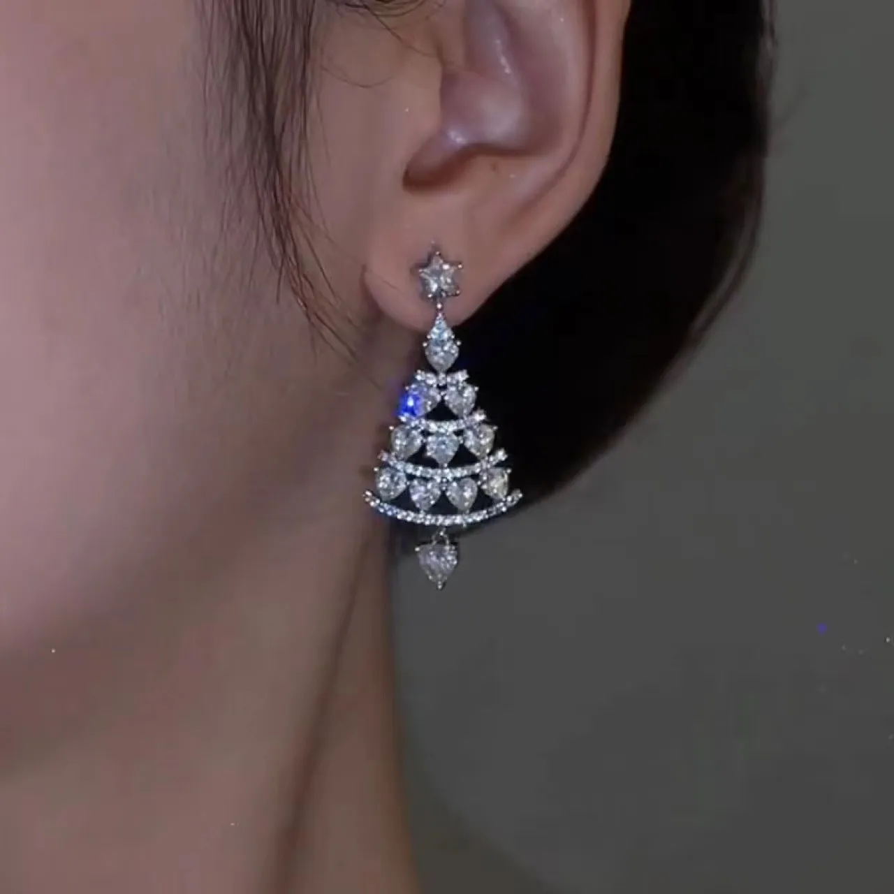 Women's High-quality Silver Needle Christmas Tree Earrings